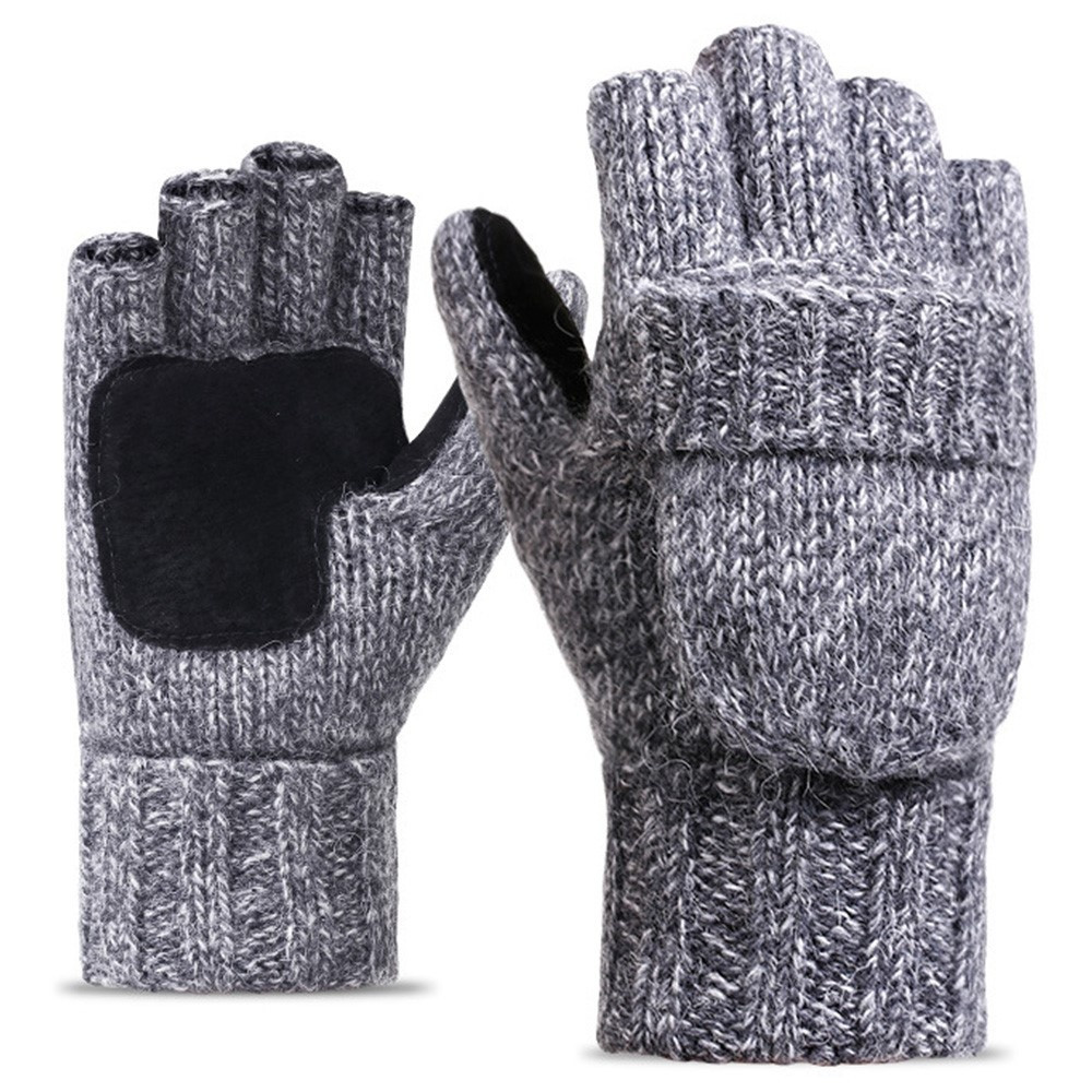 DZ07 Unisex Vintercykel Varme Uldhandsker Halvfinger Strikkede Handsker med Foldbart Betræk - Lysegrå