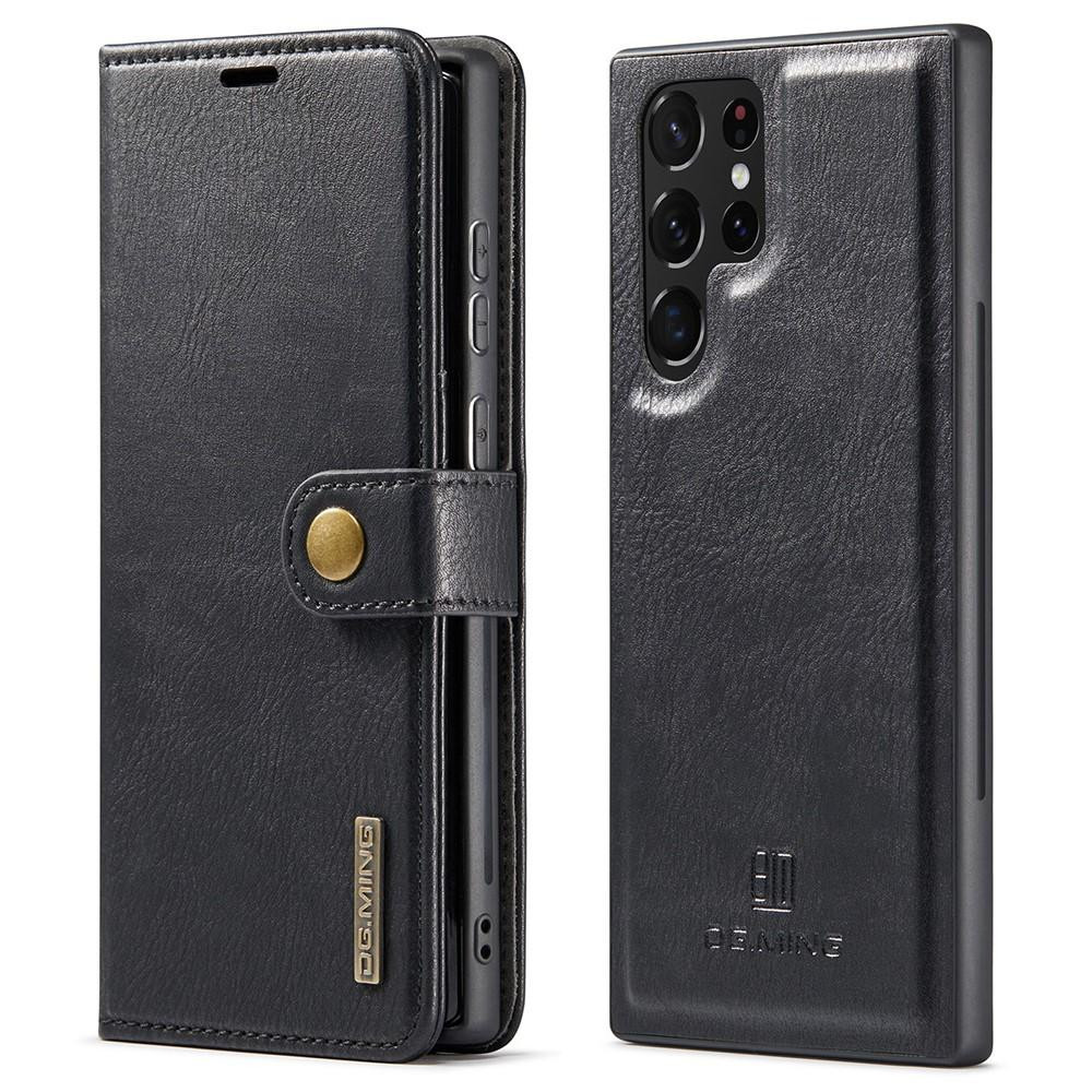 DG.MING Detachable 2-in-1 Split Leather Wallet Full Protection Cover Shell TPU Inner Phone Case for Samsung Galaxy S22 Ultra - Black
