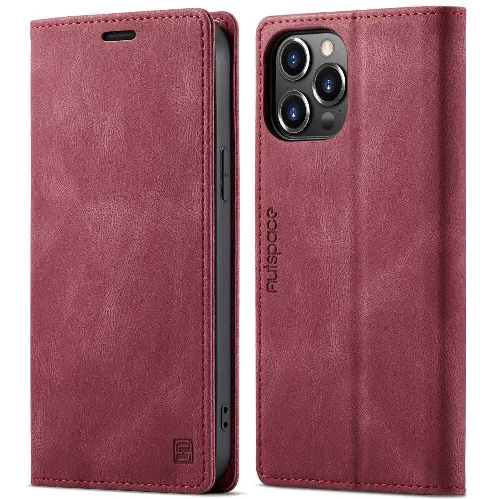 AUTSPACE A01 Retro Wallet Case for iPhone 13 Pro Max - Red