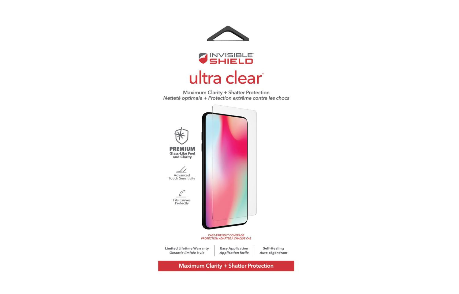 Ultra Clear and Virtually Indestructible Incredibly clear and unbelievably tough, the InvisibleShield Ultra Clear offers advanced clarity and a glass-like surface to accentuate the sharp images and vibrant colors in the most advanced smartphone displays. The Ultra Clear fits curved or flat screens perfectly, and it protects from scratches and drops. Plus, it’s now easier to install than ever.