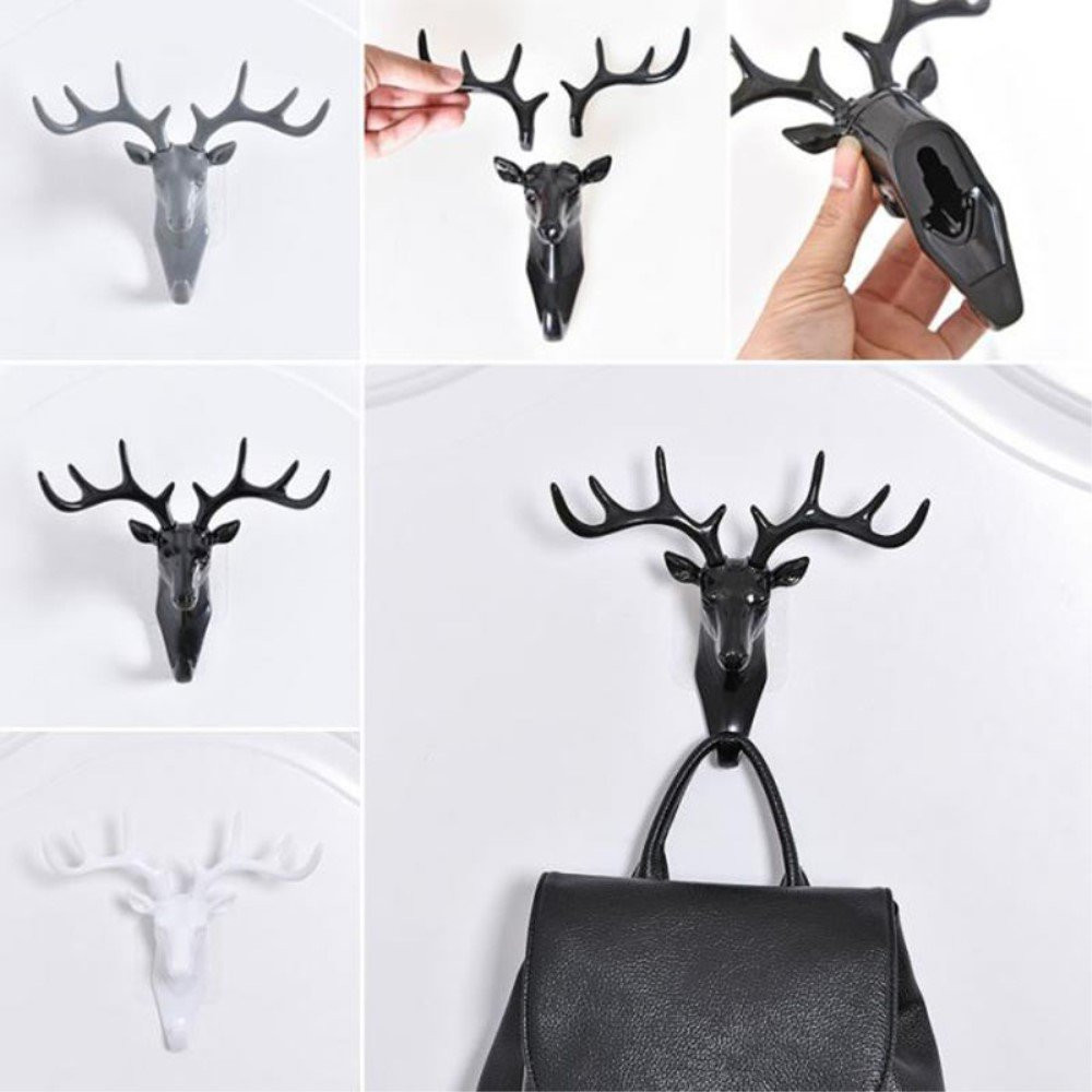 Deer Head Hook Wall Hanger Key Rack Holder Resin Decor - Black • Deer head design hook, decorative and practical