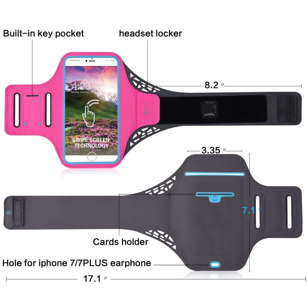 BDD-061Z 5.5-inch Ultra-thin Sports Armband Case for iPhone 7 Plus/6/6s Plus 5.5 inch etc - Rose This Ultrathin Sports Armband is a perfect companion for you when you are doing exercise. It can secure your phone to your arm so you never miss your favorite tunes while running or jogging. The adjustable strap allows for a comfortable custom fit. High quality transparent PVC window enables you to view information and operate the phone without taking it out of the armband.