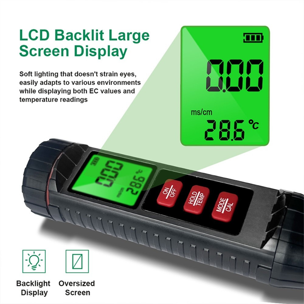 ST06 Soil EC Conductivity 3 in 1 Digital Meter for Greenhouse, Plants, Agriculture, Temperature and Moisture Detector