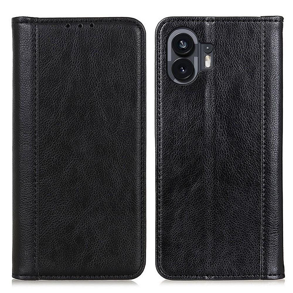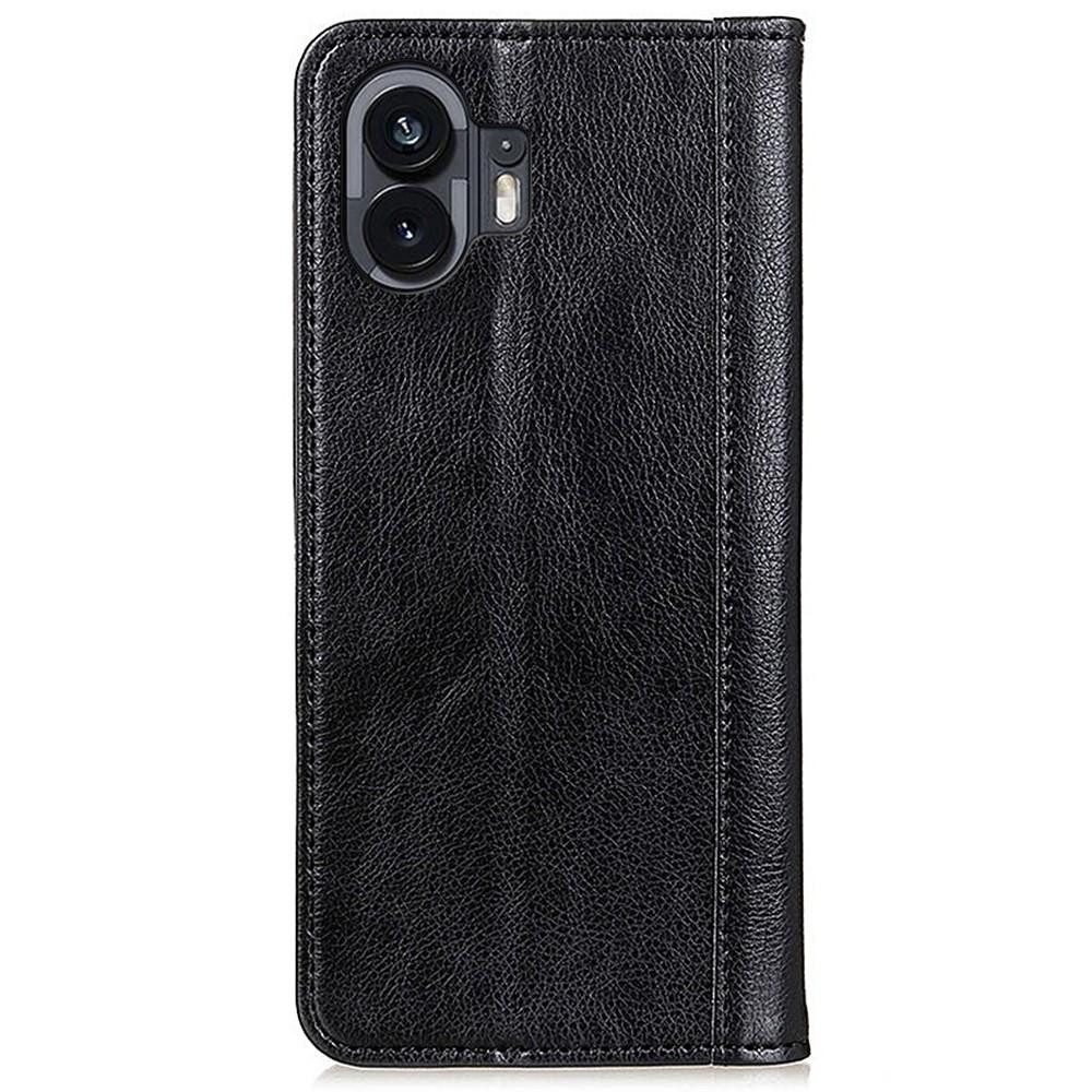 For Nothing Phone (2) Split Leather Wallet Stand Phone Case Litchi Texture Protective Cover - Black Made of quality split leather and TPU material which is durable, smooth and soft