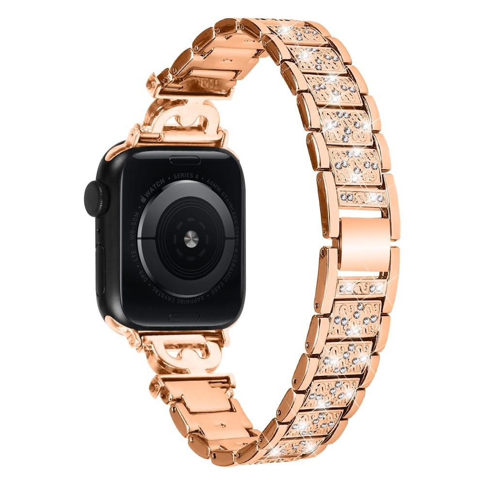 Watch Band for Apple Watch Ultra 49mm / Series 8 7 45mm / Series 6 5 4 SE (2022) SE 44mm / Series 3 2 1 42mm , 3-Bead Rhinestone Decor Stainless Steel Strap - Rose Gold The watch band is made of stainless steel material, anti-wear and durable