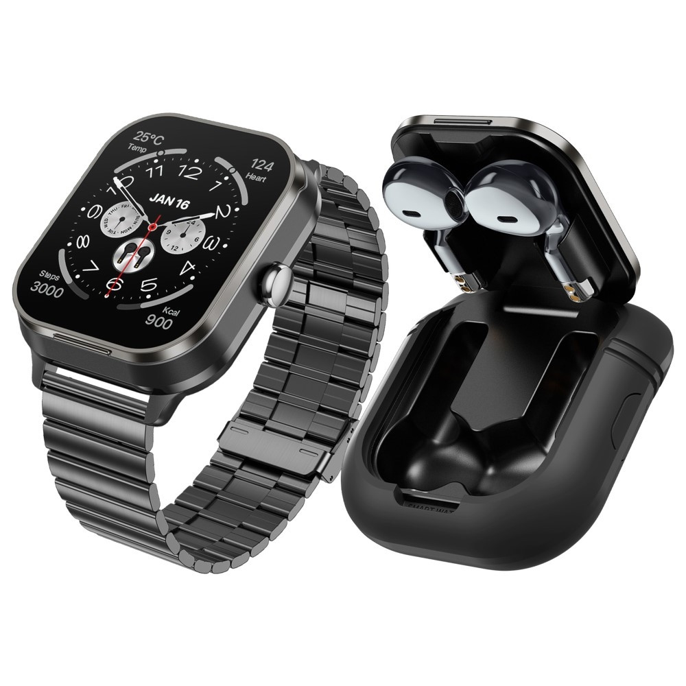 D8 Pro 2 - in - 1 Bluetooth Headphones & Smart Watch Health Monitoring Steel Strap
