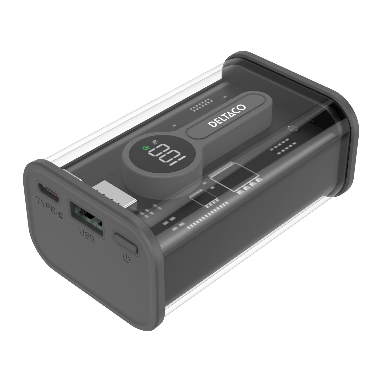 Deltaco Transparent power bank with fast charging 10,000 mAh