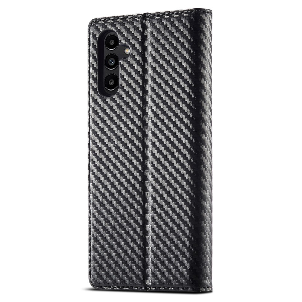 LC.IMEEKE for Samsung Galaxy A15 Carbon Fiber Texture Phone Flip Leather Wallet Case Drop-proof Cell Phone Cover - Horizontal Stripe Made from PU leather + TPU materials, the case is tough and durable. The surface has carbon fiber texture design, wear-resistant, dust-proof, and anti-fingerprint. It fits your phone perfectly.
