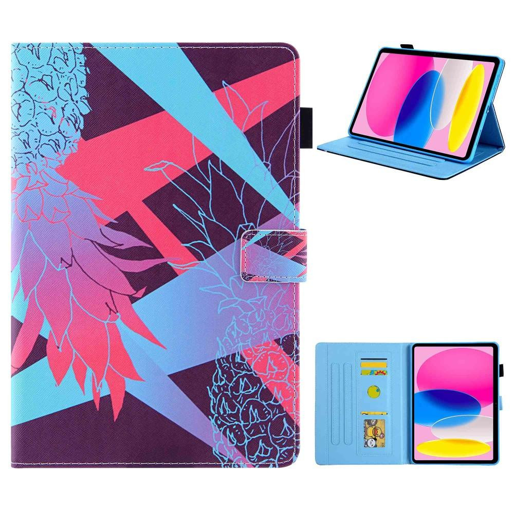 For iPad 10.9 (2022) / iPad 10th Gen Pattern Printing PU Leather Tablet Case Cross Texture Foldable Stand Card Holder Protective Cover - Red Pineapple Cross texture PU leather surface+TPU inner case, dual protection for your device