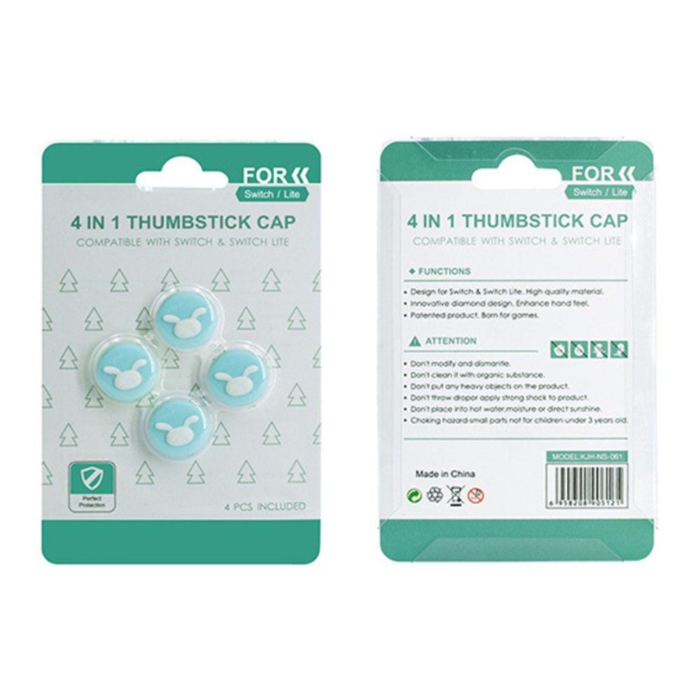 NS-061 for Nintendo Switch / Switch Lite 4 in 1 Cartoon Rabbit Silicone Thumb Stick Hat - Blue+White Offering a unique grip and feel, elevate your gaming performance with these specially designed thumbstick caps for Nintendo Switch/Switch Lite