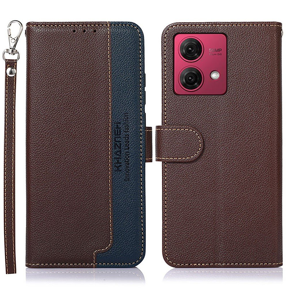 KHAZNEH for Motorola Moto G84 5G RFID Blocking Anti-scratch PU Leather Phone Case Litchi Texture Wallet Phone Stand Cover