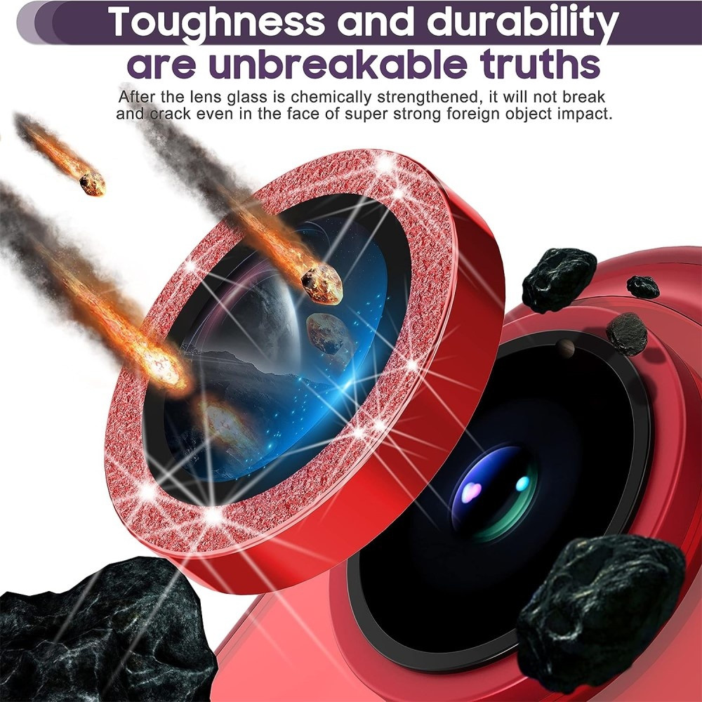For iPhone 15 / 15 Plus Ring Circle Lens Film Set Glitter Metal+Tempered Glass Camera Lens Protector - Black Made of quality metal+tempered glass, durable to use