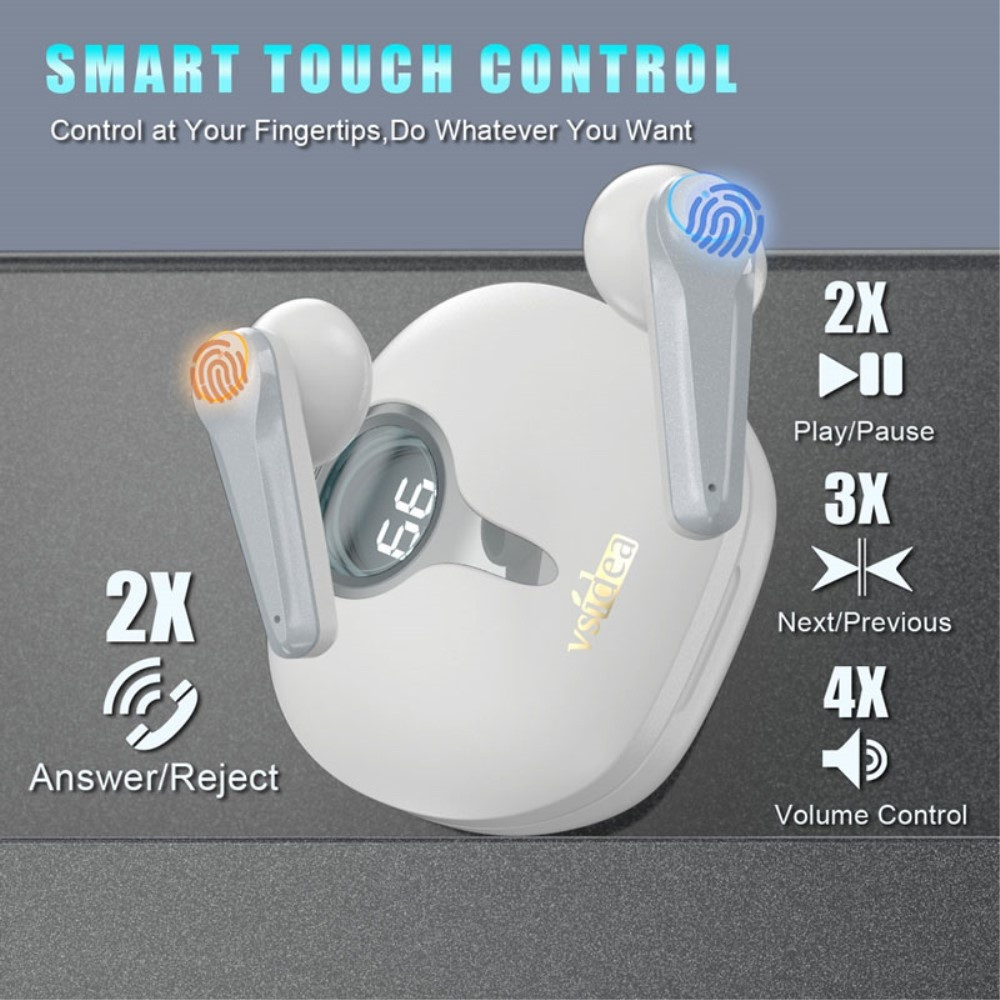 VSIDEA A15K Langattomat Kuulokkeet BT 5.4 Tehokas Basso ENC Melunvaimennus IPX4 Vedenpitävät TWS-kuulokkeet - Valkoinen