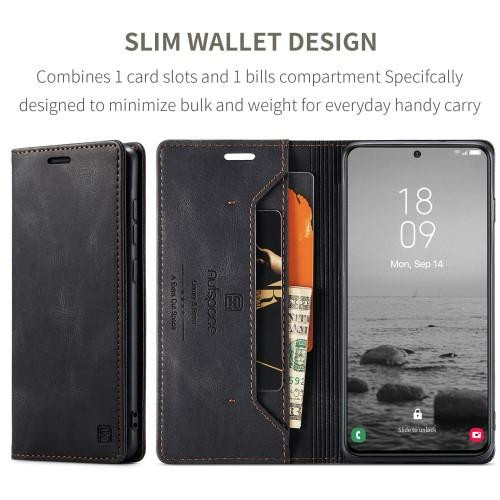 AUTSPACE A01 -sarja Samsung Galaxy S23 RFID-estävä puhelinkotelo Retro-tekstuurinen PU-nahkainen lompakkojalusta Matta Flip -puhelimen kansi - musta premium-PU-nahka ja pehmeä TPU-sisäkotelo, jossa matta rakenne, tarjoavat herkän kosketustunteen