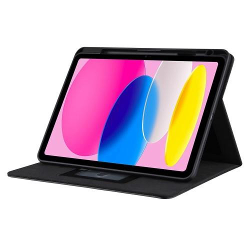 taristikot laadukkaalla laitteistonahkaisella telineellä -tabletin suojus iPadille 10.9 2022 Gen 10 - musta Tämä kotelo on valmistettu korkealaatuisesta (PU-nahasta), pehmeästä ja sileästä mikrokuitavuoresta, kulutusta kestävä ja naarmuuntumaton Kotelon oikealla puolella on kynäpaikka, kätevä kynän kantamiseen (ei sisälly toimitukseen) Ohut TPU-kotelo mahdollistaa kynän magneettisen latauksen (stylus-kynä ei sisälly toimitukseen) Tarkat aukot ja aukot, helppo käyttää kaikkia ominaisuuksia Hyväksyy kirjontaristikot ja laatu