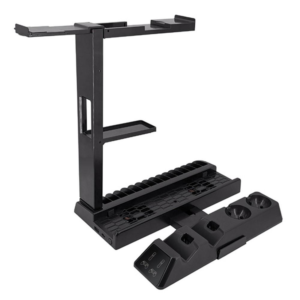 KJH PS4-031 Monitoiminen lataustelakka PS4-, PS4 Slim-, PS4 Pro -ohjain, jäähdytystuulettimen muotoinen latausteline peli-CD-laatikoiden pidikkeellä Yhteen sopiva PS4-, PS4 Slim-, PS4 Pro-, PS VR -konsolin