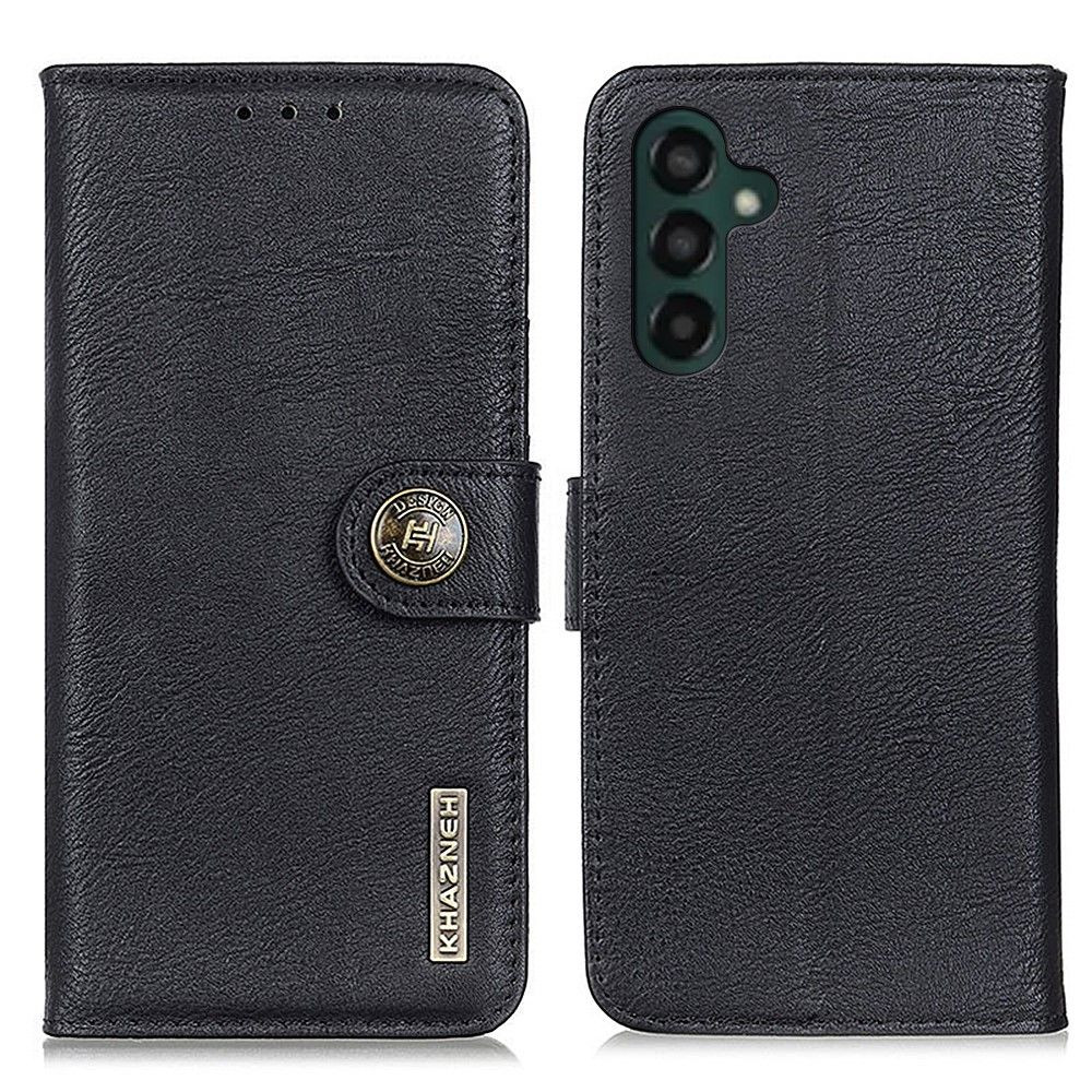 KHAZNEH For Samsung Galaxy A35 Lehmännahkainen tekstuuri PU-nahkainen puhelinkotelo Taitettava teline Lompakon pudotusta estävä kansi Ulkokuori on valmistettu ensiluokkaisesta PU-nahasta ja sisäkuori on pehmeää TPU, joka suojaa tehokkaasti rakasta puhelintasi päivittäisiltä vaurioilta. Hienot laitteisto-osat tekevät puhelimesta retro-ja tyylikkäämmän.