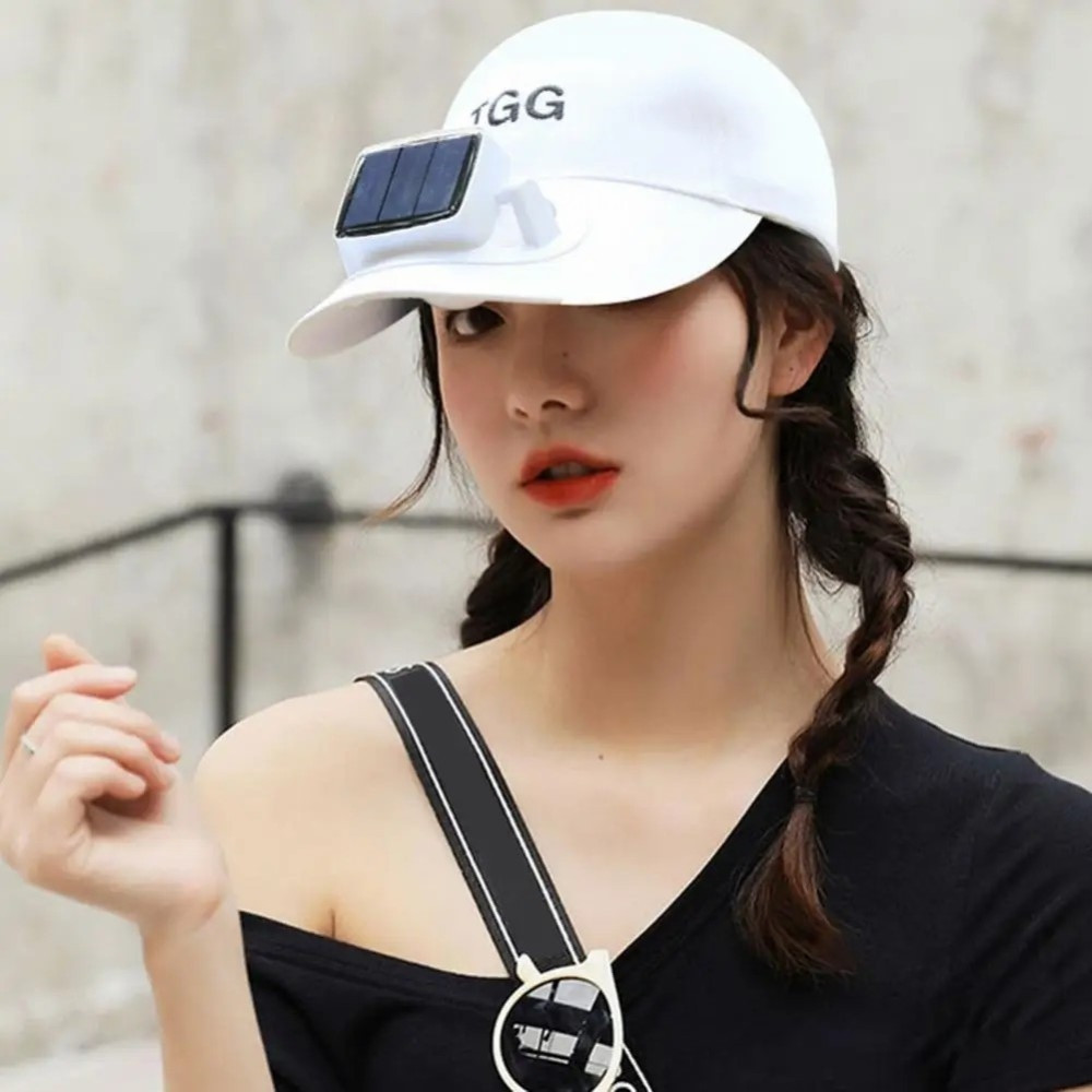 T15 Summer Outdoor Sports aurinkovarjohattu Solar Pieni tuuletin baseball-lippis - Valkoinen Pienessä tuulettimessa on suojaava muotoilu, joka suojaa silmiä ja kasvoja ja estää pitkien hiusten sotkeutumisen