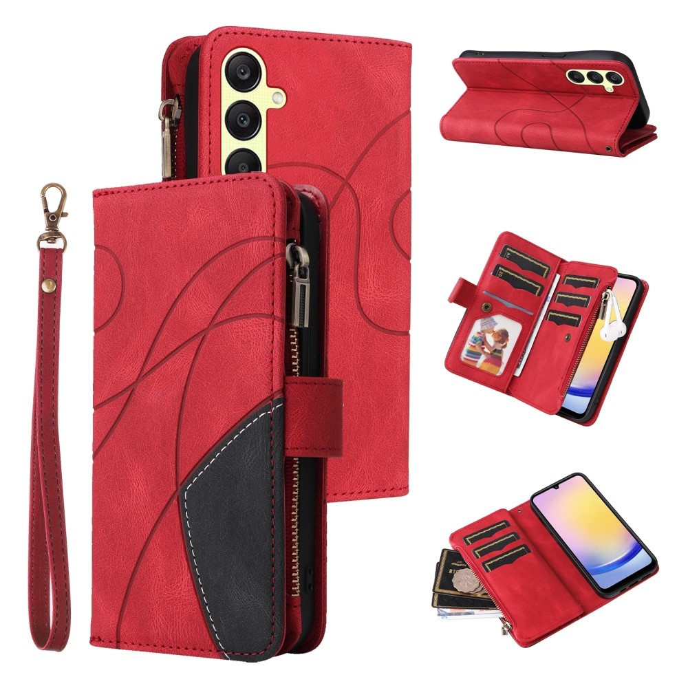 KT-monitoimisarja-5 Samsung Galaxy A25 -puhelinkotelolle Kuori Painettu kaareva viivakuvio Kaksivärinen PU-nahkainen lompakkosuunnittelu Älypuhelimen päällyste PU-nahasta
