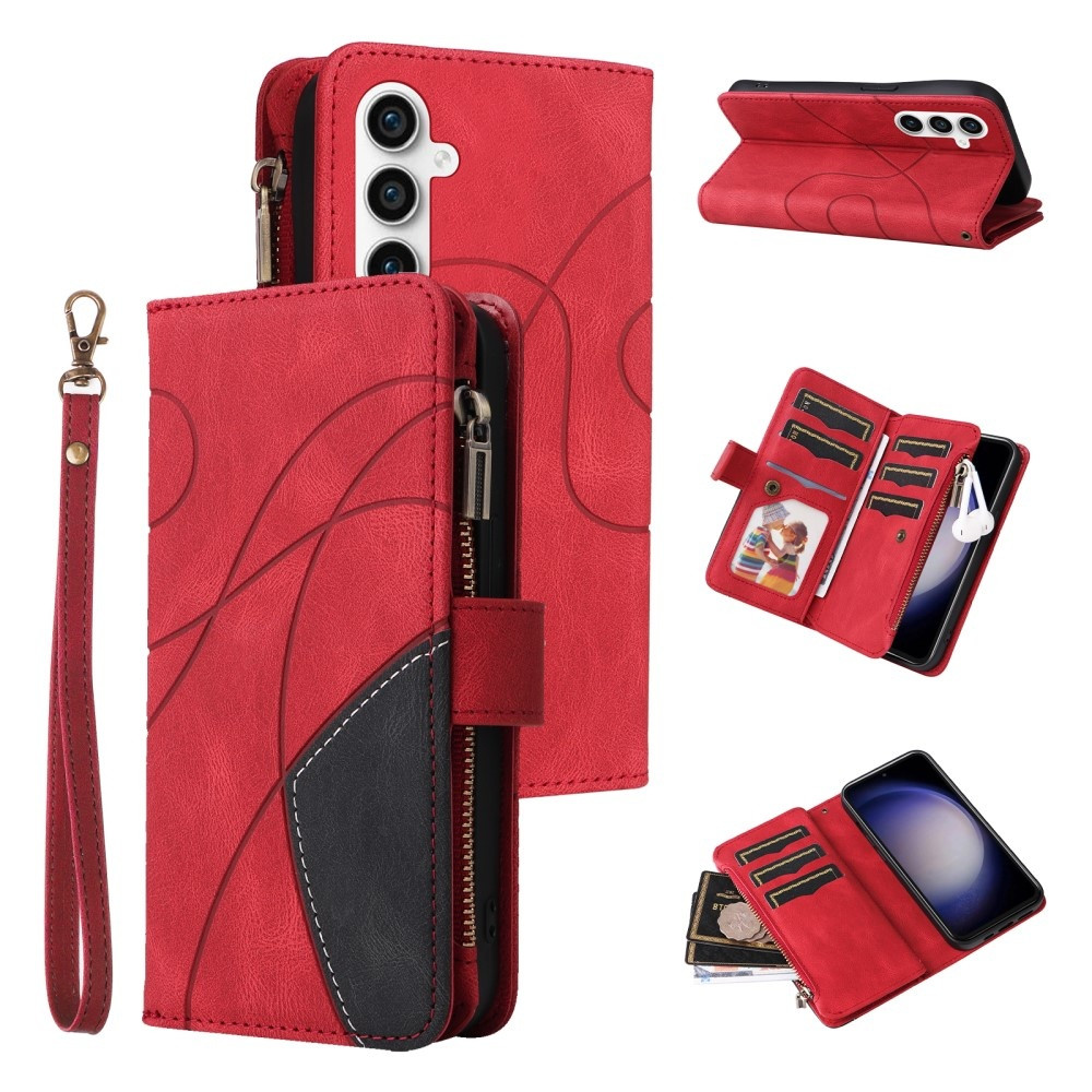 KT-monitoimisarja-5 Samsung Galaxy S23 FE monikorttipaikoille Pudotuskestävä PU-nahkainen puhelinkotelo Kaksivärinen liitosvetoketjutasku matkapuhelimen kansi.
