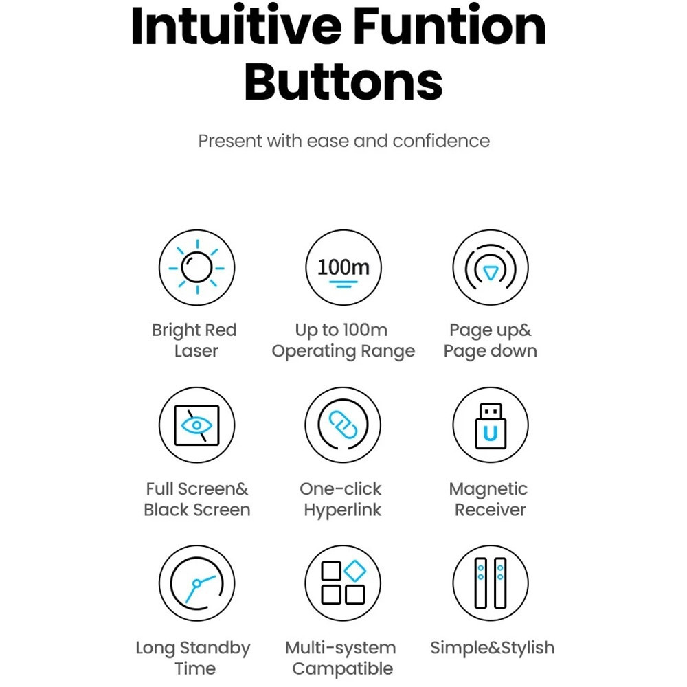 UGREEN 90121 2,4G Wireless Presenter Oppladbar multifunksjonsfjernkontroll Laserpeker for bærbar PC