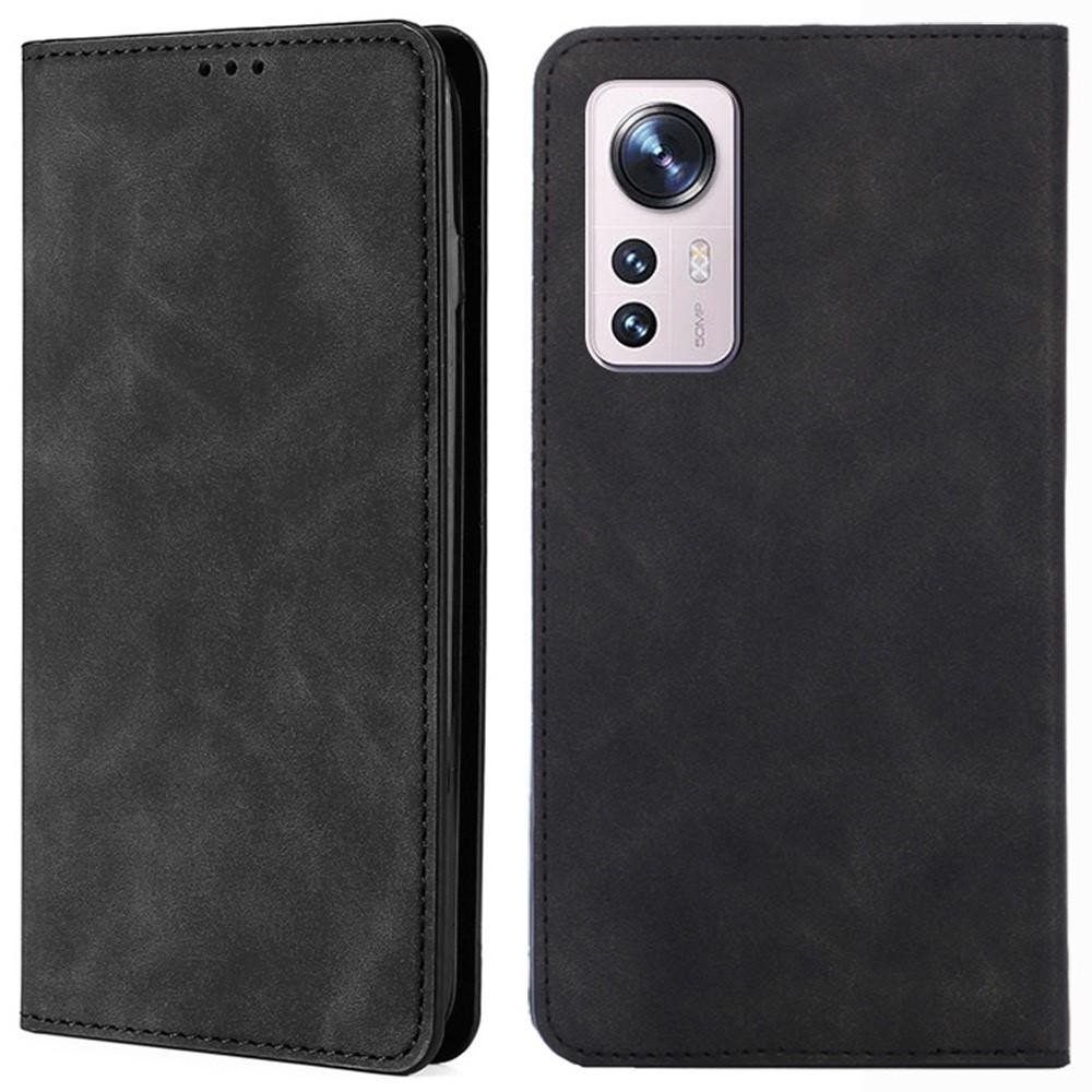 For Xiaomi 12 Pro Skin-Touch Feeling Vintage Leather + TPU-deksel Kortspor Stand Flip-magnetisk deksel - Svart