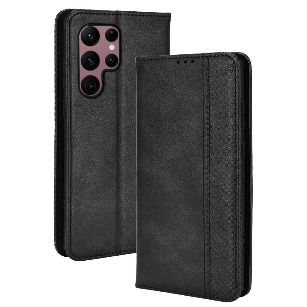 Retro-stiltrykt veske + TPU indre veske Lommebokstativ Telefonveske Telefonveske Telefonveske til Samsung Galaxy S22 Ultra 5G - svart