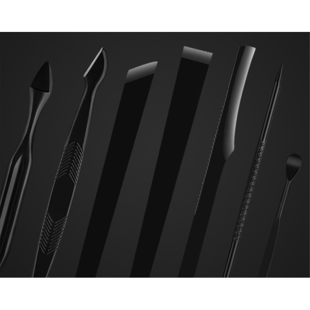 1 x V-formet trykkpinne Ansiktspleie 1 x øyenbrynspincett 1 x flerbrukssaks 1 x hudormenål med løkkefjerner