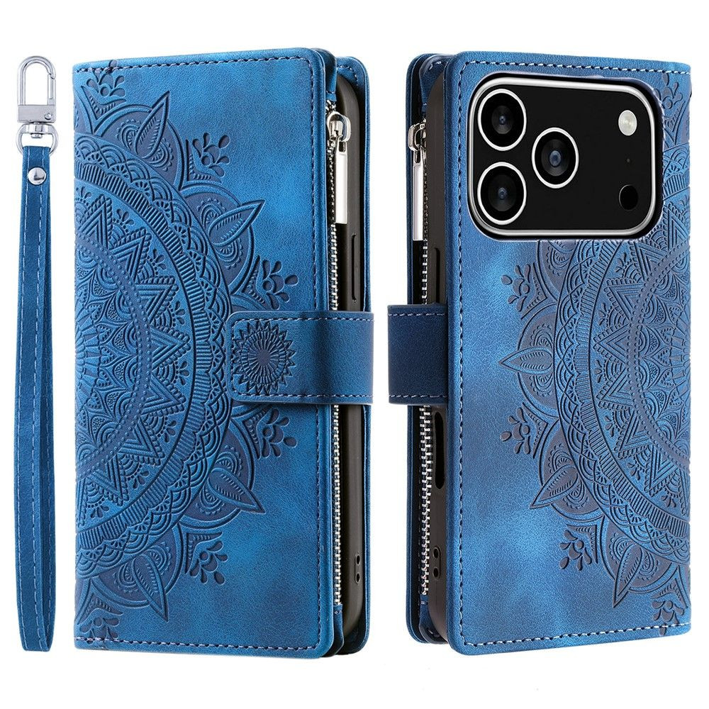 Lommeboketui kompatibelt med iPhone 17 Pro PU lær telefonetui mandala blomstermønster