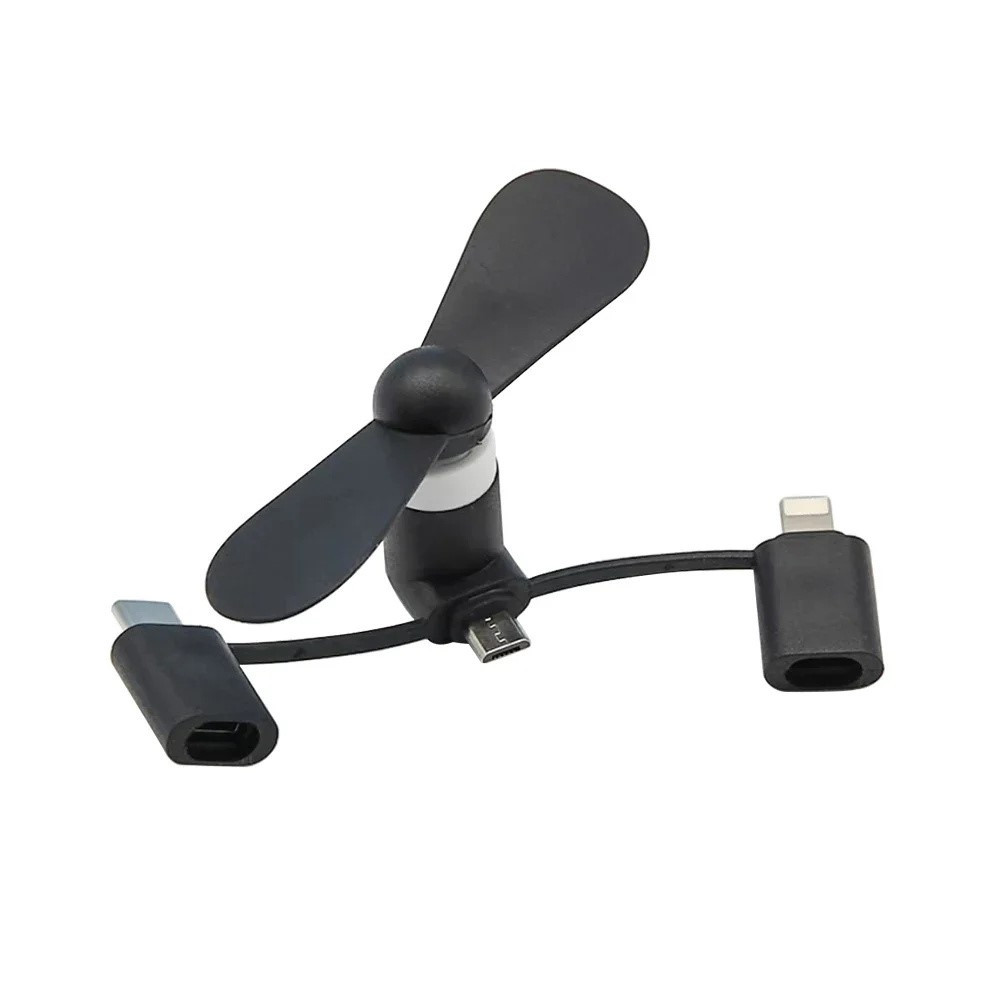 【Allsidig kompatibilitet】3-i-1 USB-vifte kompatibel med Micro USB, Type-C og 8-pinners enheter, egnet for ulike smarttelefoner og bærbare datamaskiner.