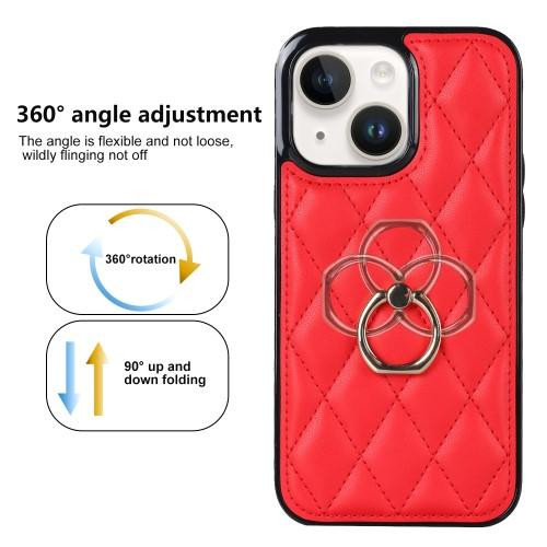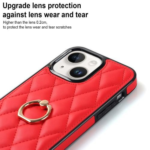 iPhone 14 Rhombus Grid Pattern Veske Fingerring - Rød