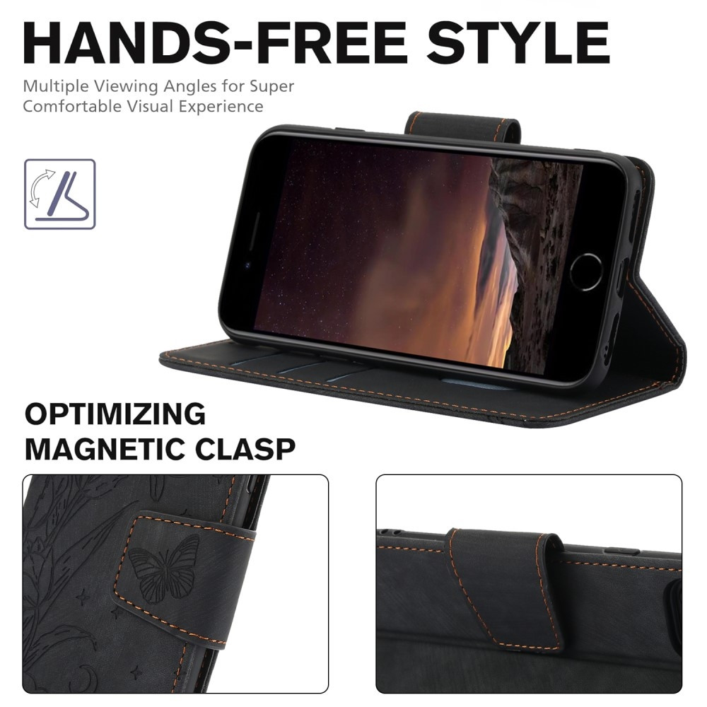 For iPhone 16e Etui Sommerfugl Blomst Ripebestandig Telefondeksel