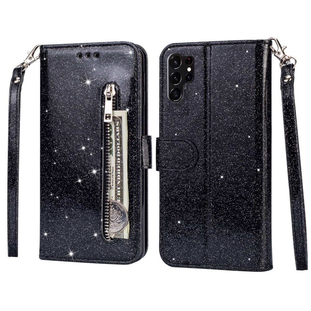 For Samsung Galaxy S25 Ultra Stående Glitterdeksel med Glidelåslomme