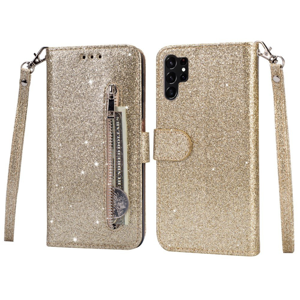 For Samsung Galaxy S25 Ultra Stående Glitterdeksel med Glidelåslomme