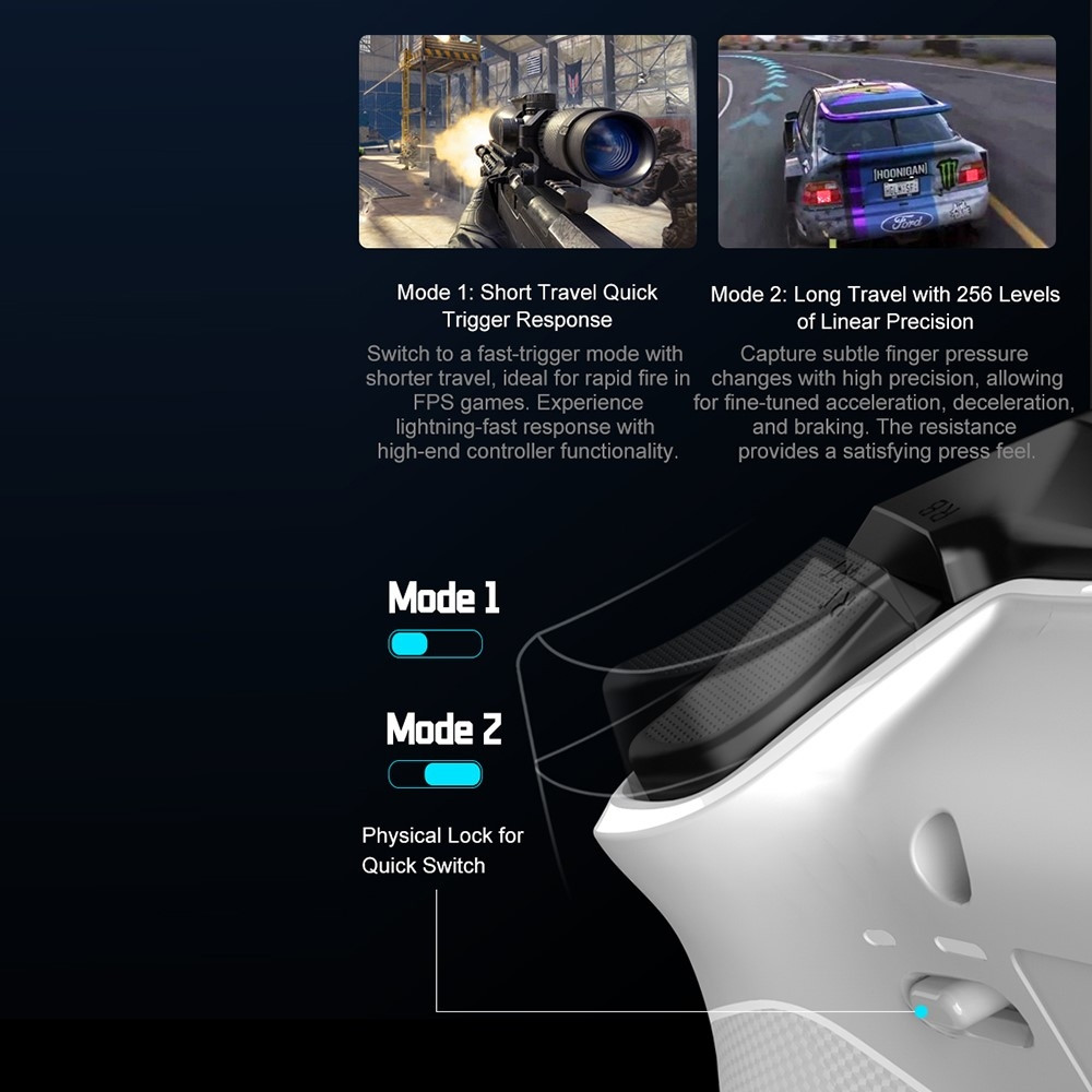 【Trådløs tilkobling】 Har Bluetooth og 2,4G trådløse tilkoblinger for fleksible spillinnstillinger.