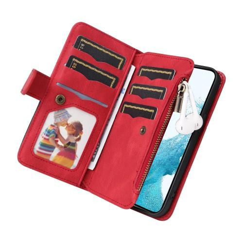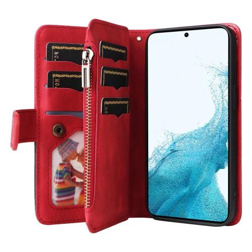 Lommebok-deksel til Samsung Galaxy S23 med 8 kortspor og myntrom med glidelås.