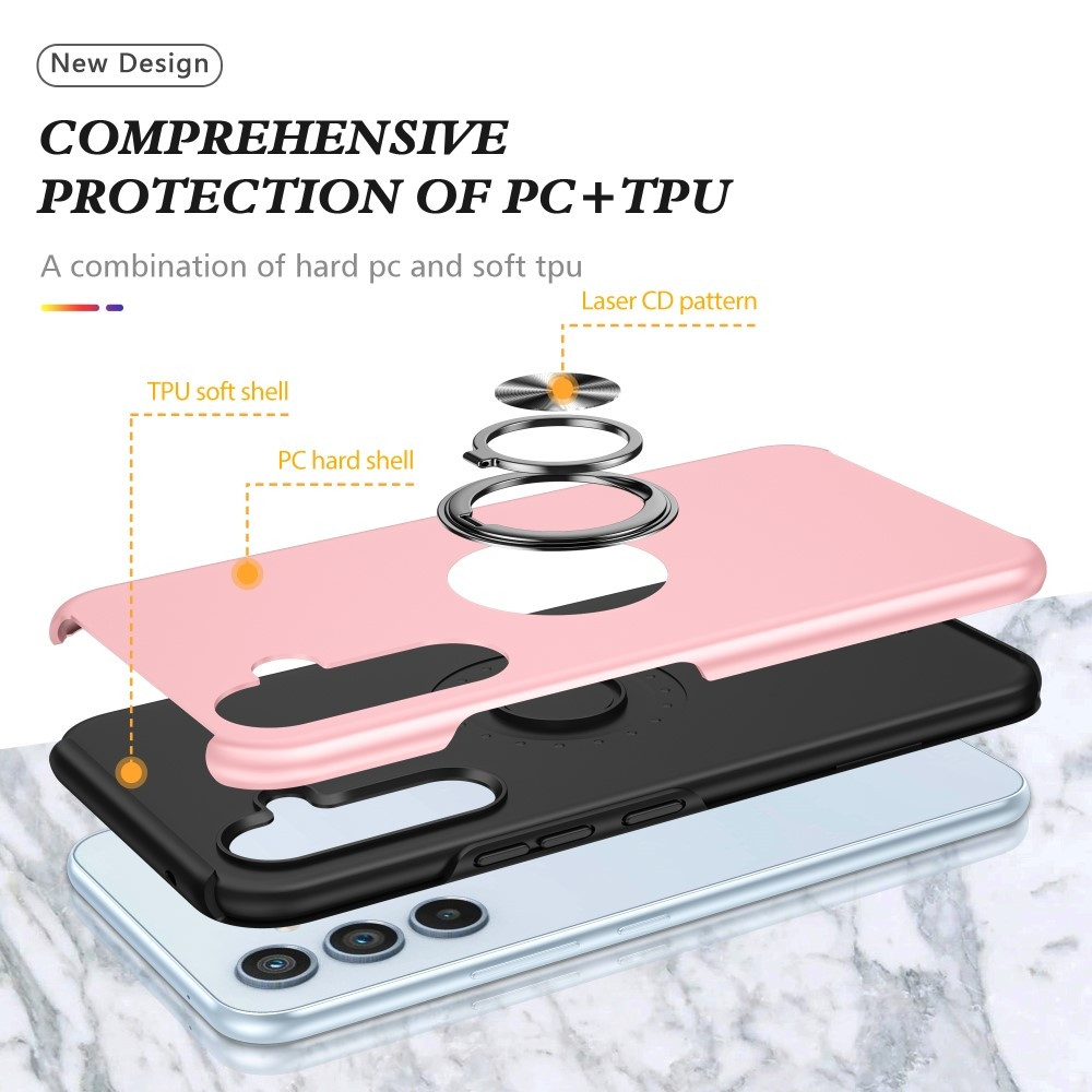 Til Samsung Galaxy A16 5G/A16 4G hybrid-deksel med roterbar ringholder - rosa holdbar hybridkonstruksjon: Dekselet kombinerer et robust PC-panel med en myk termoplastisk bunn, noe som gir både styrke og fleksibilitet for økt beskyttelsesnivå