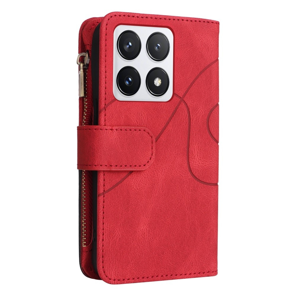 KT Multifunksjons Series-5 for Xiaomi 14T Pro Case Dual Color Splicing Lærveske - Rød L aget av PU-lær og TPU-materiale, 2-lags beskyttelse