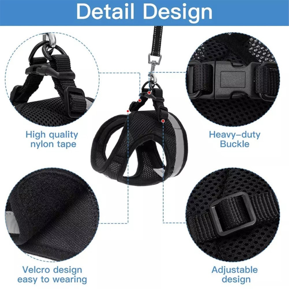Reflekterende hundesele for liten middels hund - svart/L